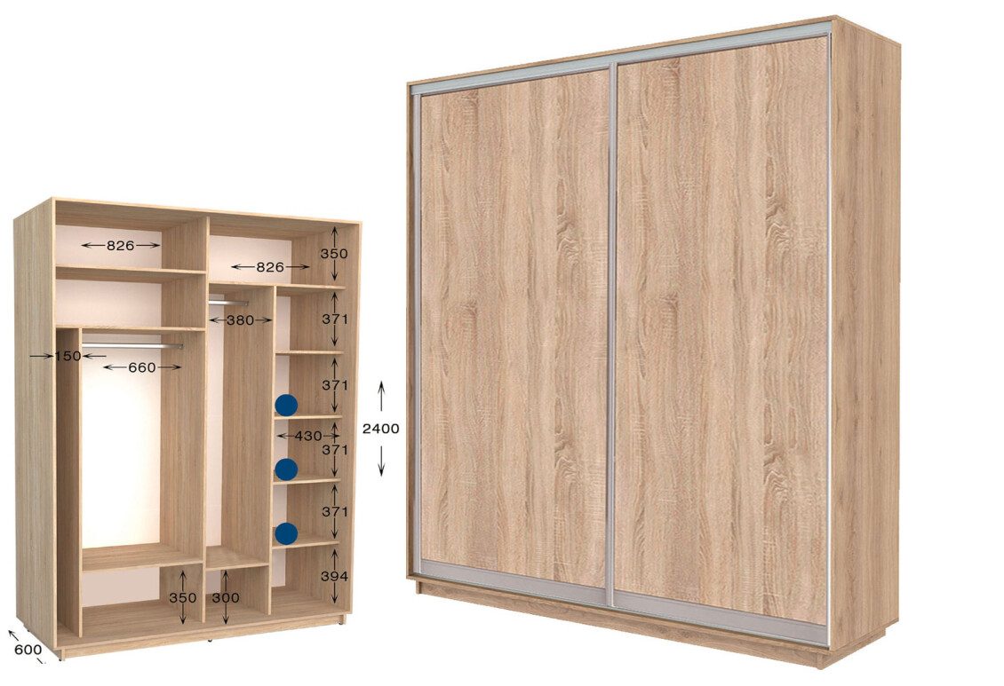 - Размер: ширина 170 см, высота 220 см или 240 см, глубина 450 мм или 600 мм