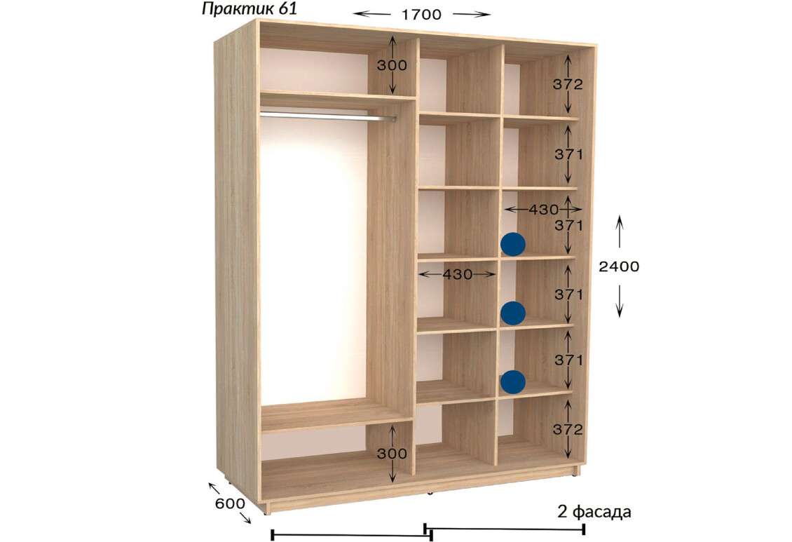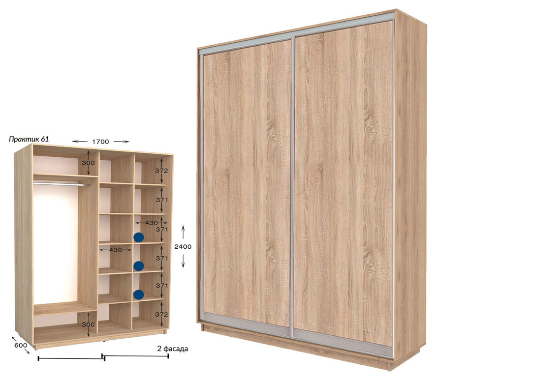 Характеристики товара Шкаф-купе Garant Практик №61 2-дверный 170 см