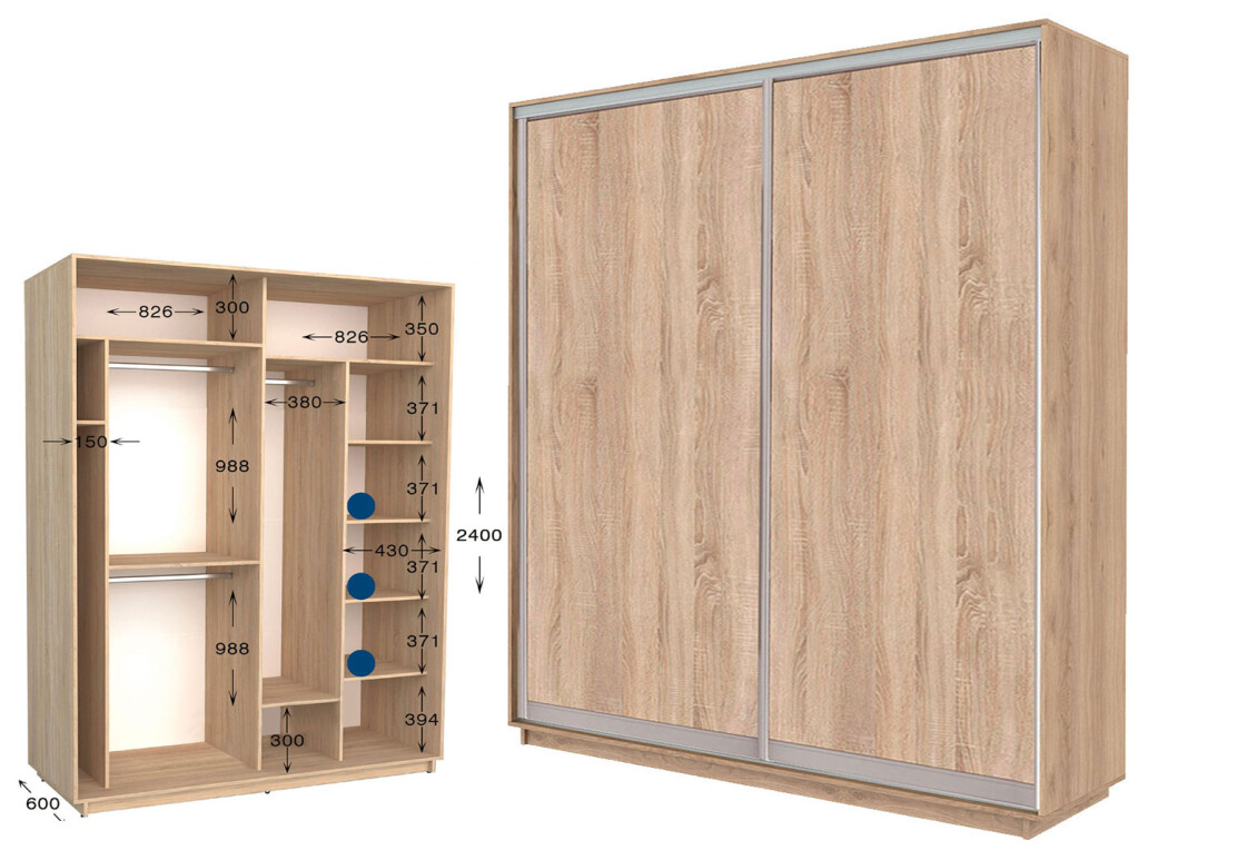 - Размер: ширина - 170 см, высота - 220 см или 240 см, глубина - 450 мм или 600 мм