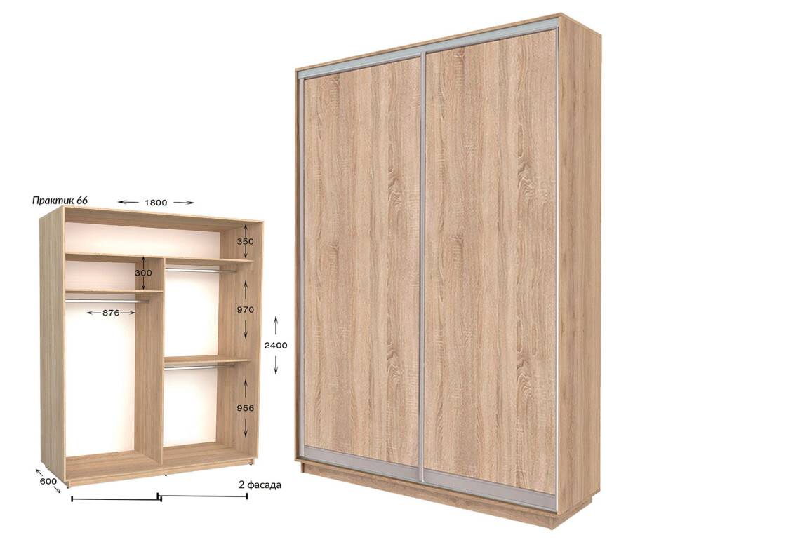- Размер: ширина - 180 см, высота - 220 см или 240 см, глубина - 450 мм или 600 мм