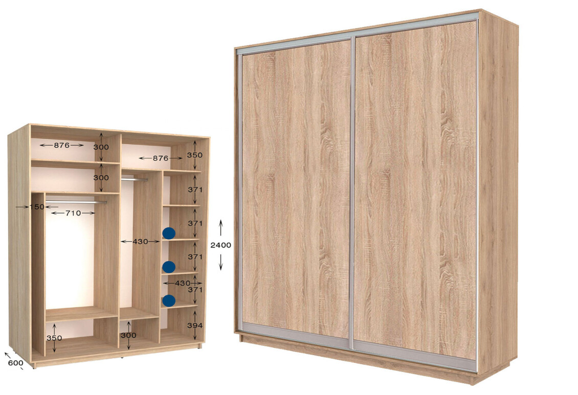 - Размер: ширина - 180 см, высота - 220 см или 240 см, глубина - 450 мм или 600 мм