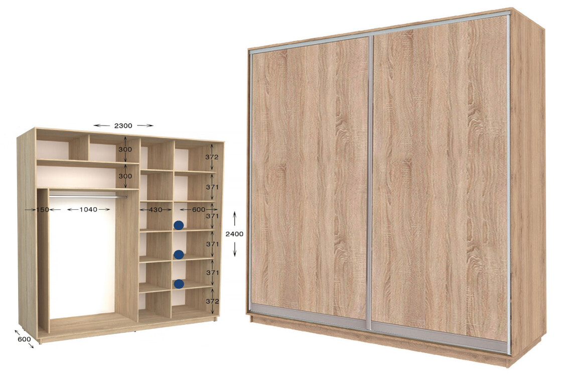 • Размер: ширина - 230.00 см, высота - 220 см или 240 см, глубина - 450 мм или 600 мм