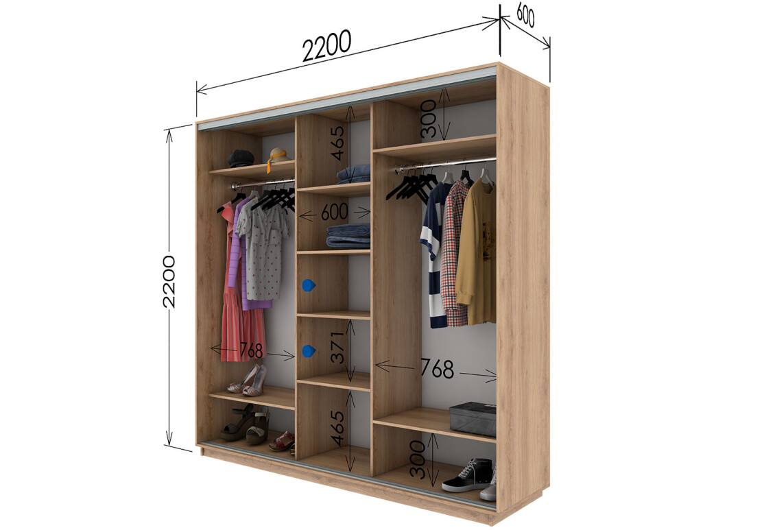 Характеристики товара Шкаф-купе Garant 3-дверный 220x220x60 см