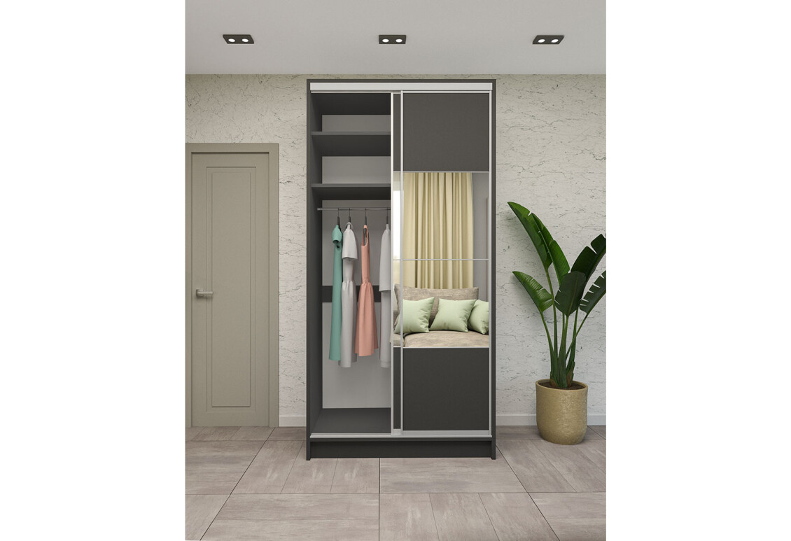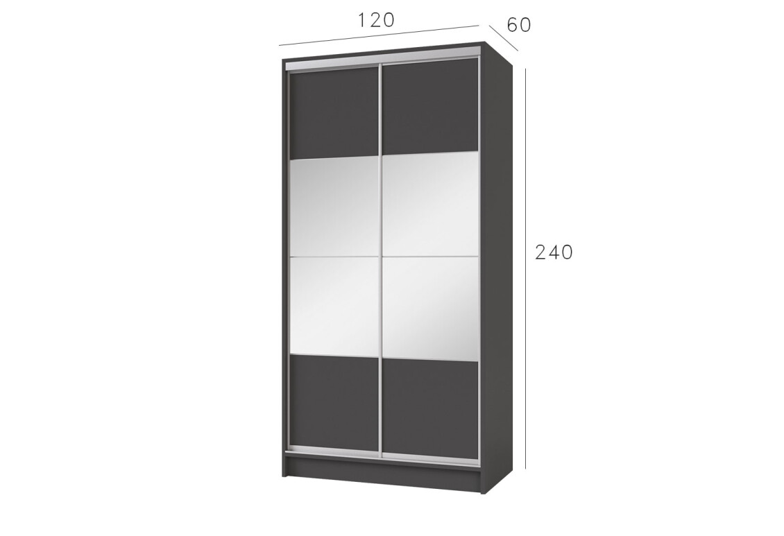 - Шкаф-купе двухдверный 1200х600х2400 ДСП + Зеркало Серебро, антрацит