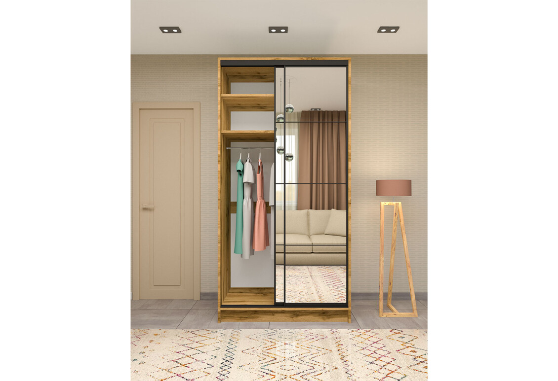 Характеристики товара Шкаф-купе двухдверный 1200х600х2400 Зеркало Серебро, дуб аппалачи