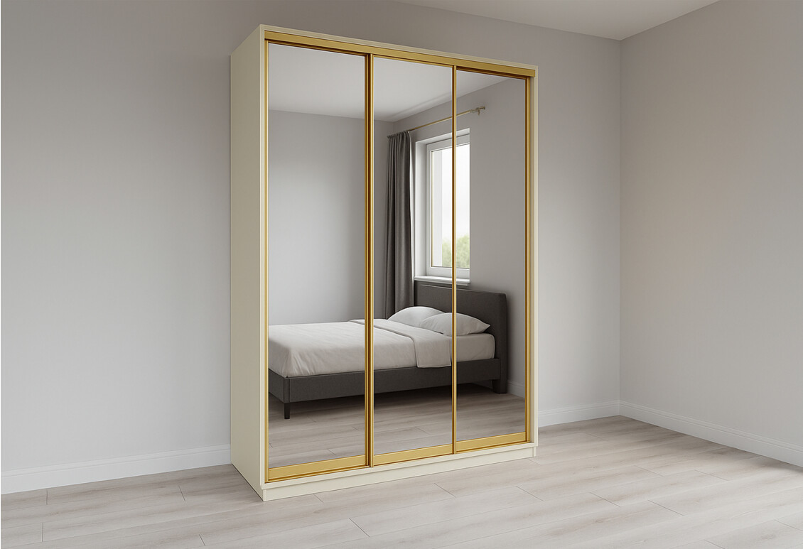 Шкаф-купе Garant Практик 123 3-дверный 250 см с зеркалом, сатин, профіль золото