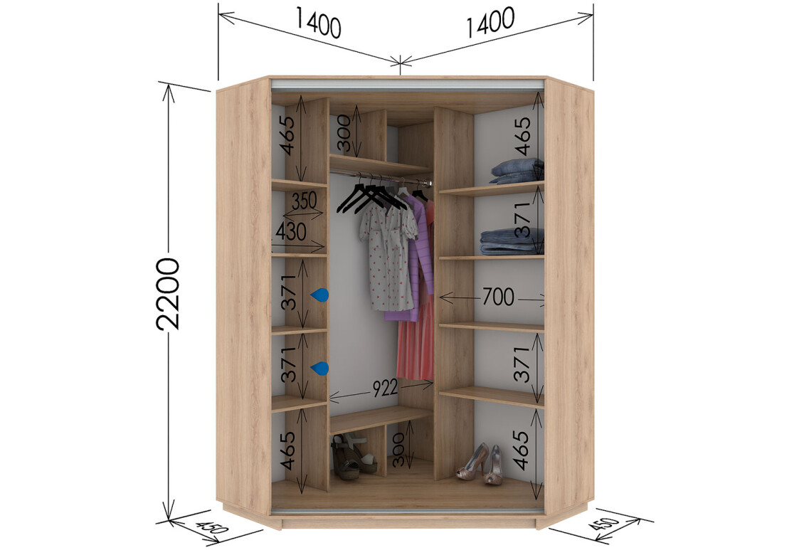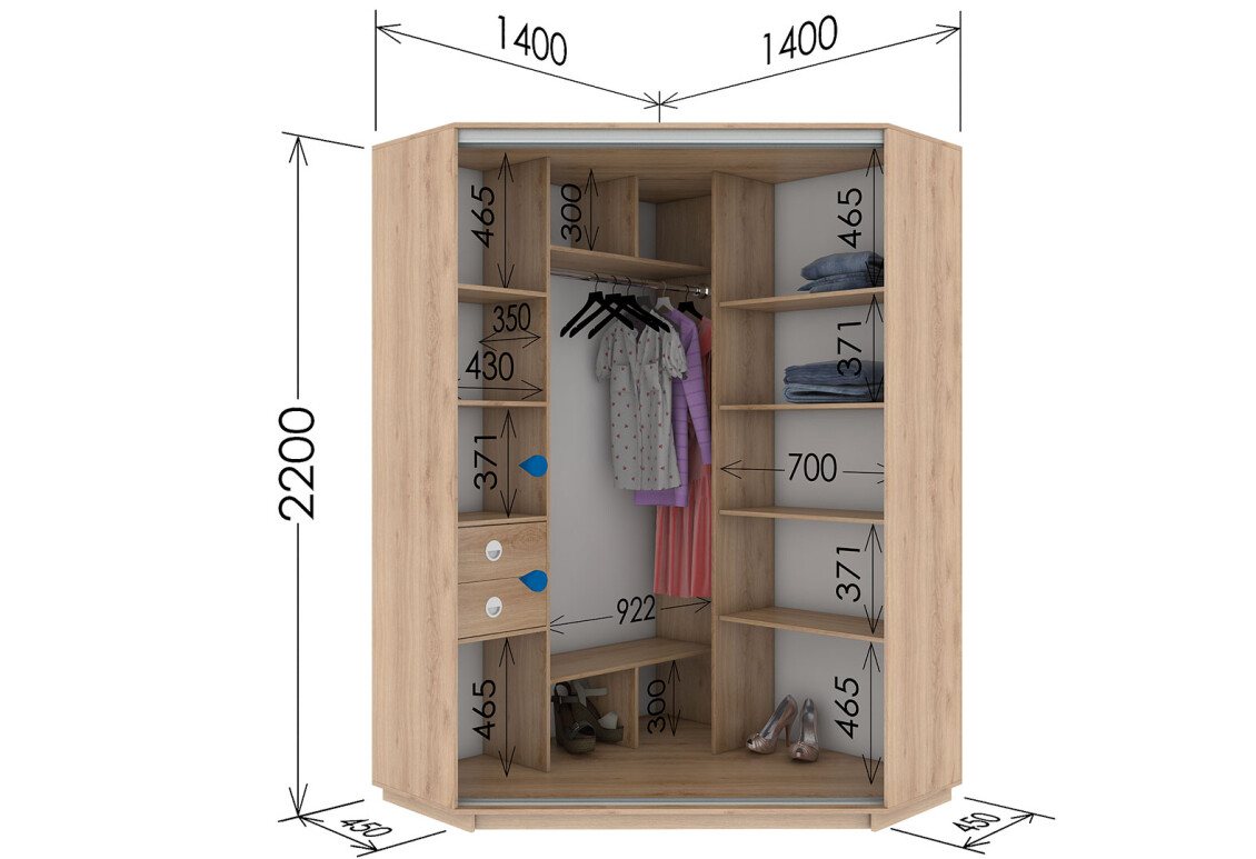 - Тип шкафа-купе: 2D, угловые, идеально подходит для оптимизации пространства