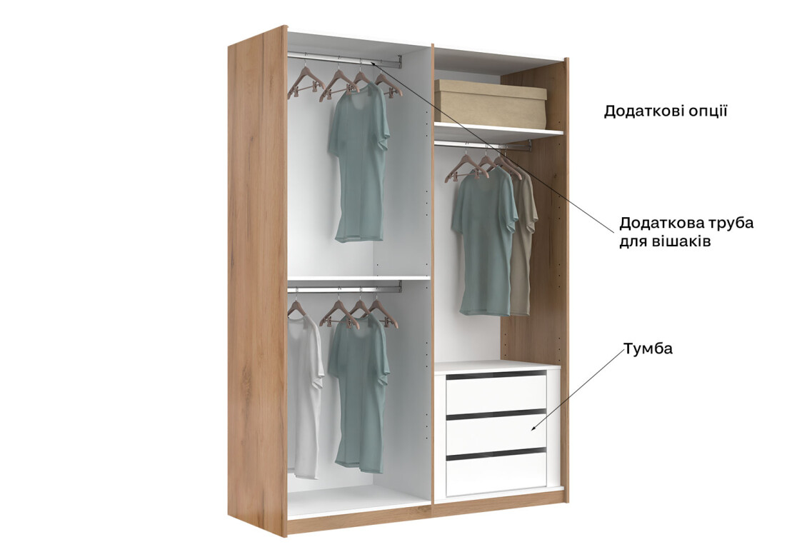 Шкаф-купе МироМарк Асти — это идеальное решение для тех, кто ценит сочетание стиля, функциональности и доступной цены. С шириной 150 см и высотой 210 см, этот двухдверный шкаф станет отличным дополнением к вашему интерьеру, обеспечивая достаточно места для хранения одежды и других вещей. Изготовленный из качественных материалов, таких как глянцевая ДСП для фасадов и ламинированная ДСП для корпуса, он гарантирует долговечность и надежность в эксплуатации. Цветовое сочетание дуба крафт и белого придаёт шкафу современный и стильный вид, который легко впишется в любой интерьер. Выбирая шкаф-купе МироМарк Асти, вы делаете выгодное вложение в свою мебель, так как он сочетает в себе высокое качество и доступную цену, что делает его отличным выбором как для оптовых, так и для розничных покупателей.