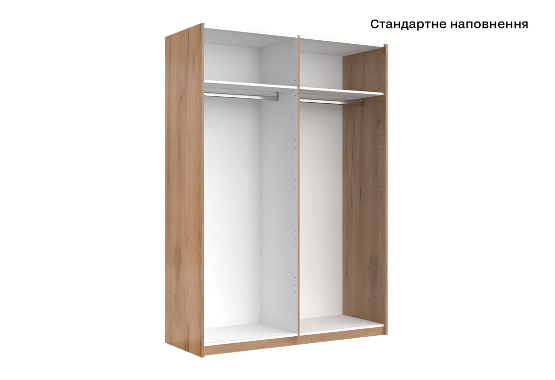 Шкаф-купе МироМарк Асти без зеркал – это идеальное решение для организации пространства в вашем доме. С его помощью вы сможете эффективно использовать каждый сантиметр, создавая уют и порядок в вашем интерьере. Изготовленный из высококачественной ламинированной ДСП, этот 2-дверный шкаф не только надежен, но и стильный. Дизайн в современном стиле, сочетание дуба крафт и глянцевого белого фасада, придаст вашему помещению элегантный и современный вид. Размеры шкафа (ширина 150 см, высота 211 см, глубина 61,5 см) позволяют разместить его в любой комнате, будь то спальня, гостиная или прихожая. Выбирая шкаф-купе МироМарк Асти, вы делаете ставку на качество и функциональность, которые обеспечат долгую службу и удовлетворение от использования.