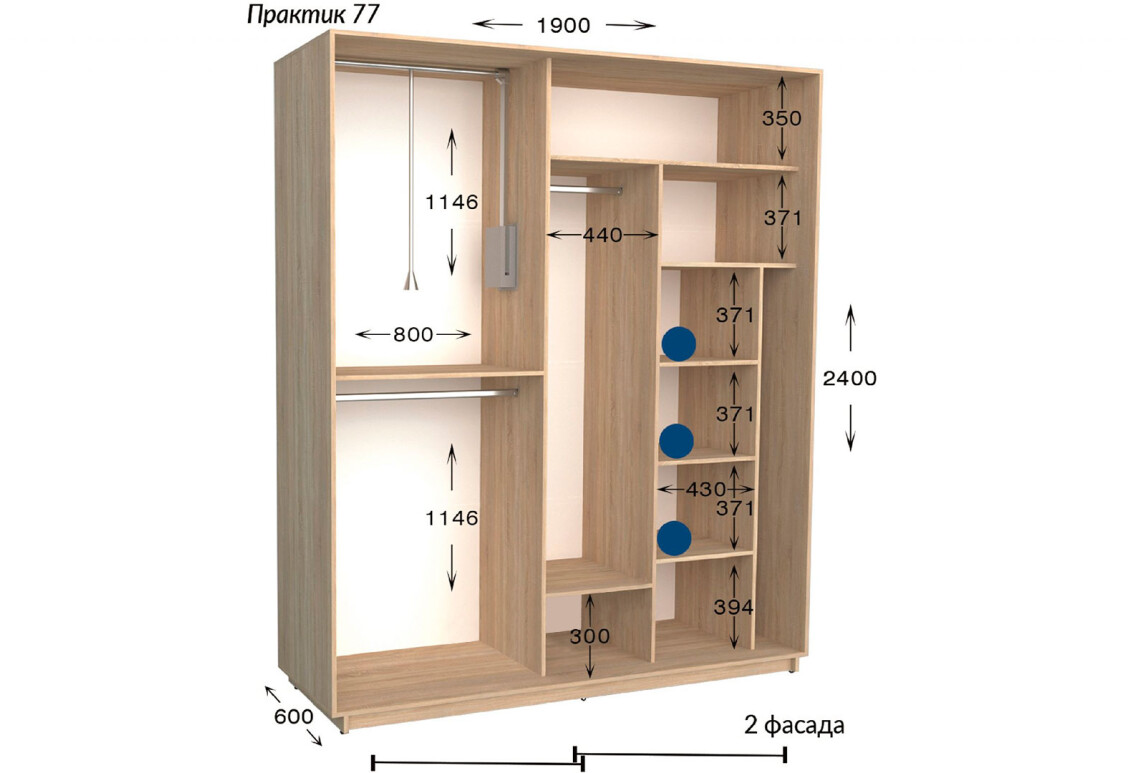 Шкаф-купе Garant Практик №77 – это идеальное решение для тех, кто ценит практичность, стиль и надежность в мебели. С шириной 190 см и высотой 220 см или 240 см, этот двухдверный шкаф станет отличным дополнением к любому интерьеру, сохраняя при этом функциональность и удобство. Он выполнен в современном стиле, что делает его универсальным выбором для любого помещения, будь то спальня, прихожая или кабинет. Наполнение шкафа включает в себя штангу для одежды и полки, что позволяет организовать пространство максимально эффективно. Благодаря разнообразию доступных модификаций, вы сможете выбрать именно тот вариант, который соответствует вашим предпочтениям и требованиям.