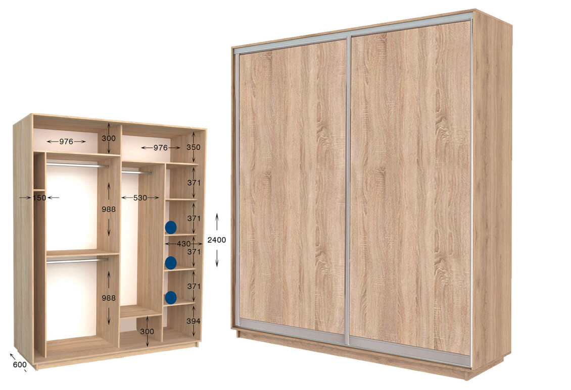 - Глубина шкафа-купе: глуб. 450 мм или 600 мм