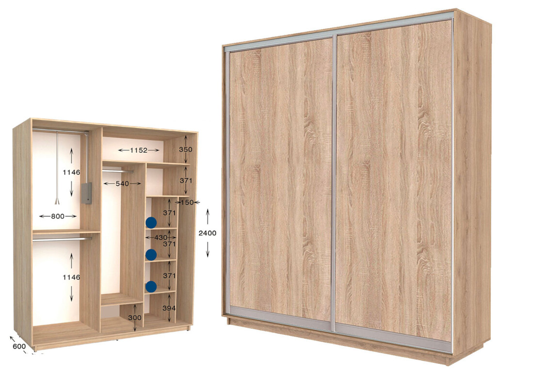 - Размер: ширина - 200 см, высота - 220 см или 240 см, глубина - 450 мм или 600 мм