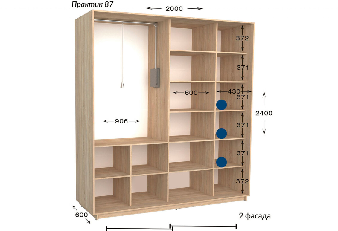 Характеристики товара Шкаф-купе Garant Практик №87 2-дверный 200 см