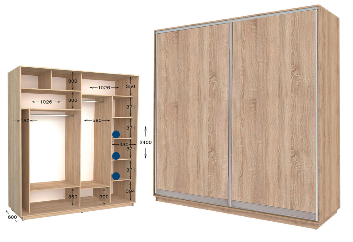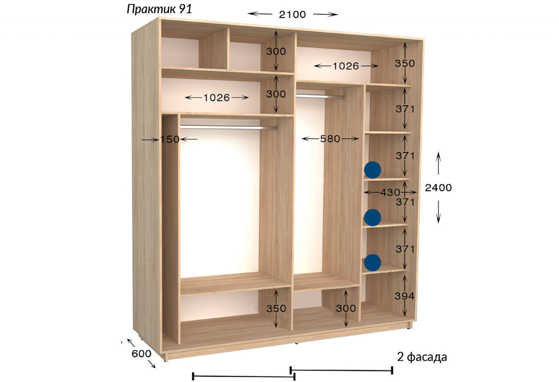 Характеристики товара Шкаф-купе Garant Практик №91 2-дверный 210 см