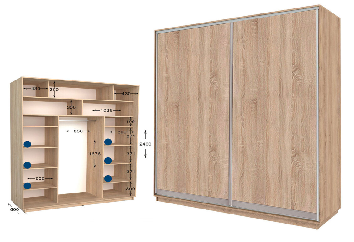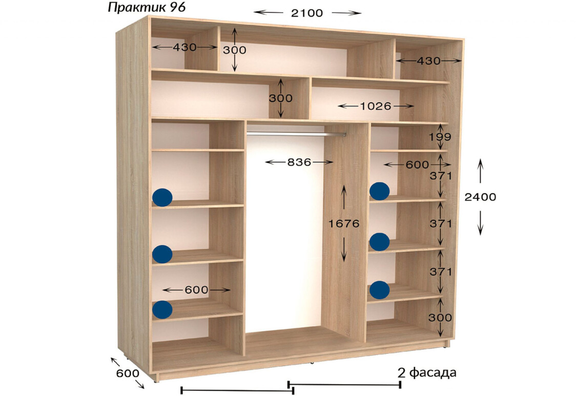 - Размер: ширина 210 см, высота 220 см или 240 см, глубина 450 мм или 600 мм