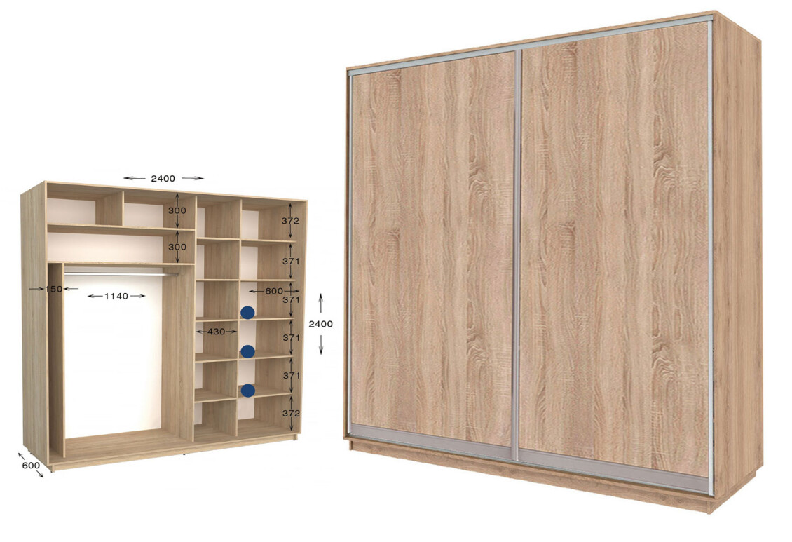 - Размер: ширина - 240.00 см, высота - 220 см или 240 см, глубина - 450 мм или 600 мм