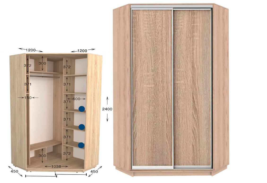 - Тип шкафа-купе: 2D, угловой