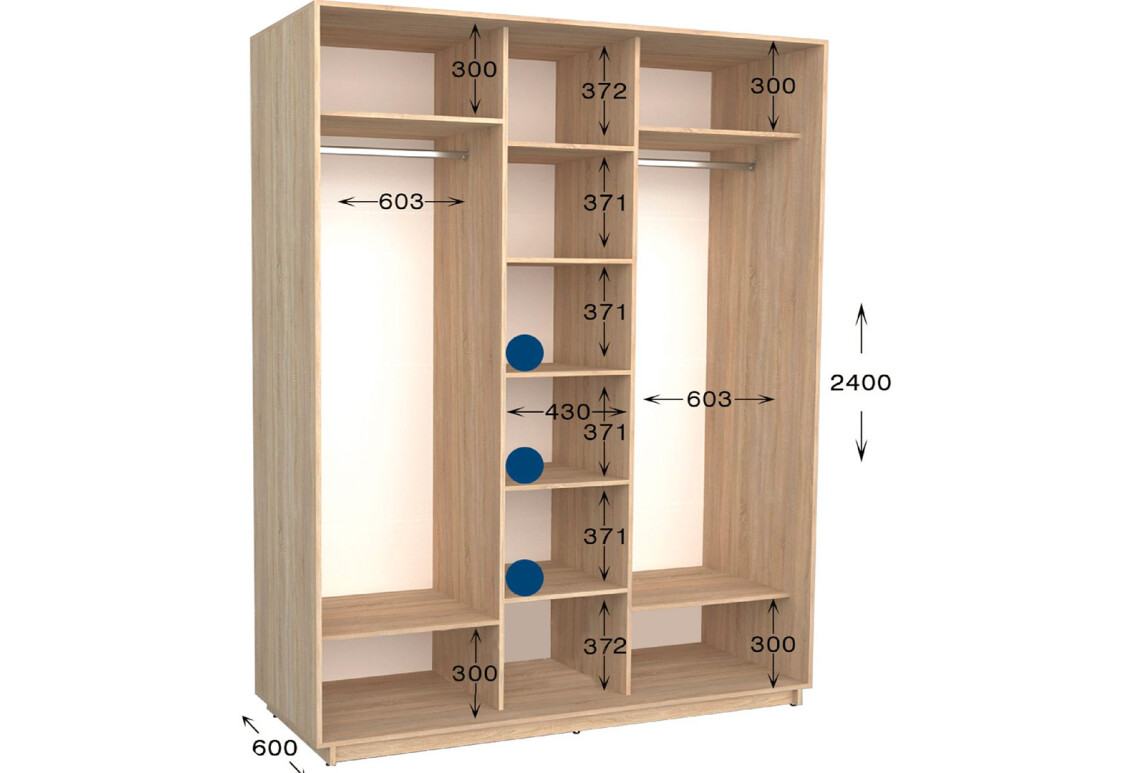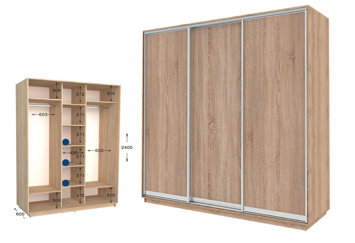Шкаф-купе Garant 3-дверный 260x240x60 см