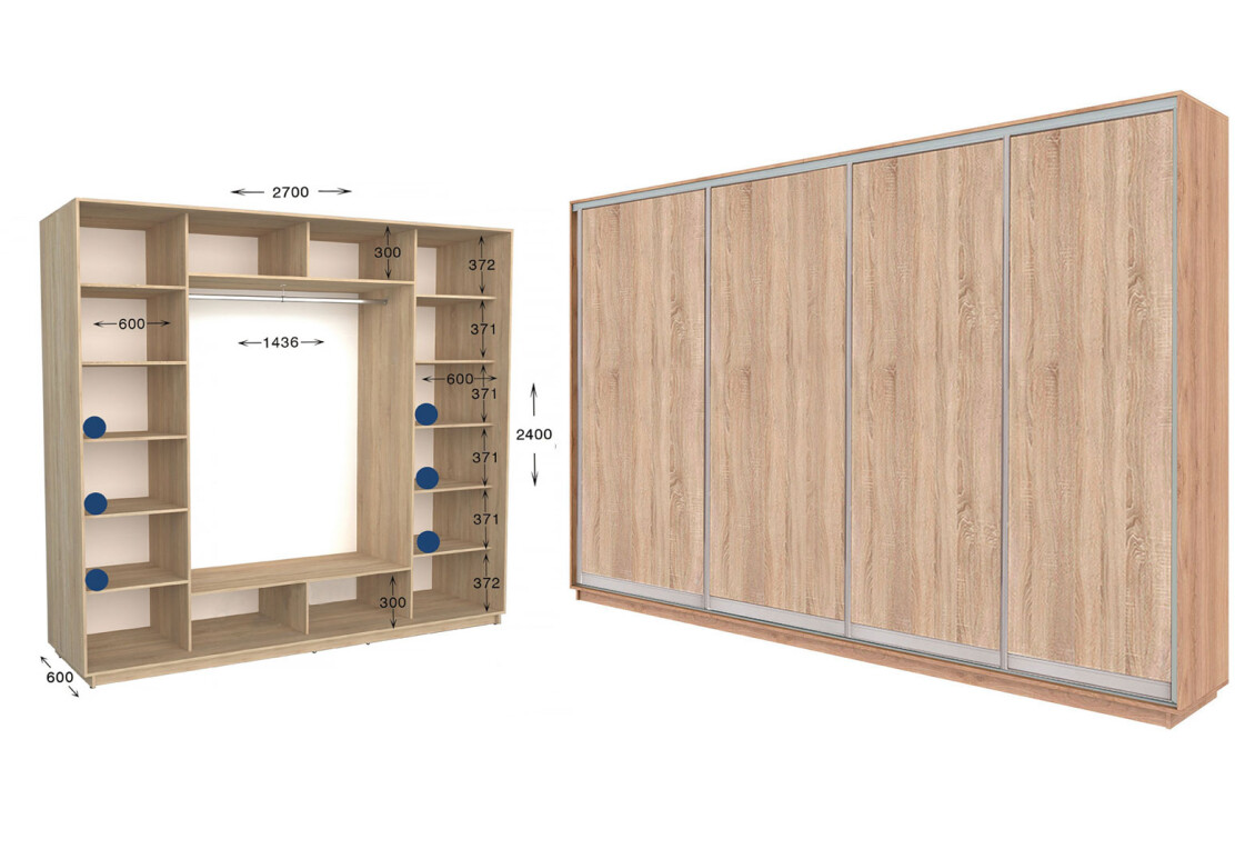 - Размер: ширина 270 см, высота 220 см или 240 см, глубина 450 мм или 600 мм