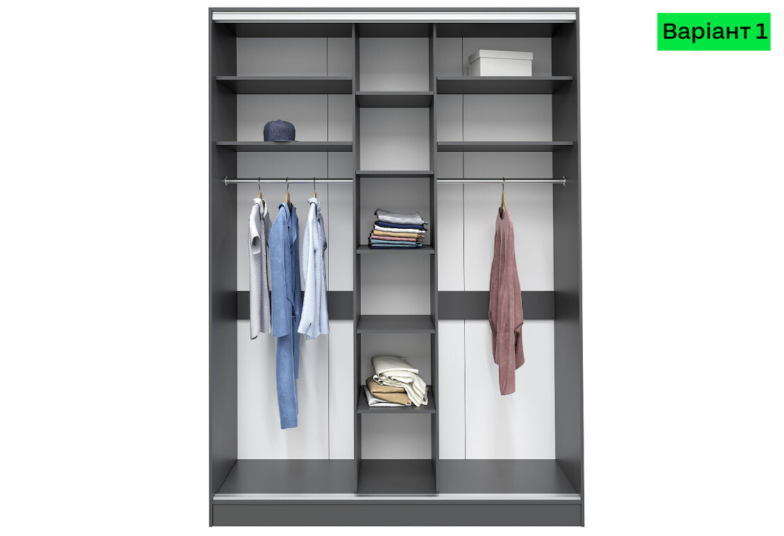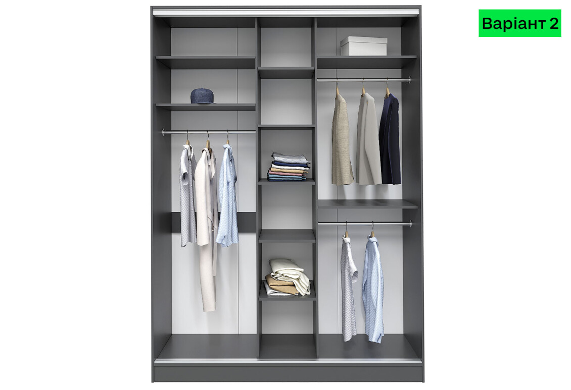- Наполнение корпуса шкафа-купе: варианты 1 и 2 – возможность выбора наполнения под ваши потребности