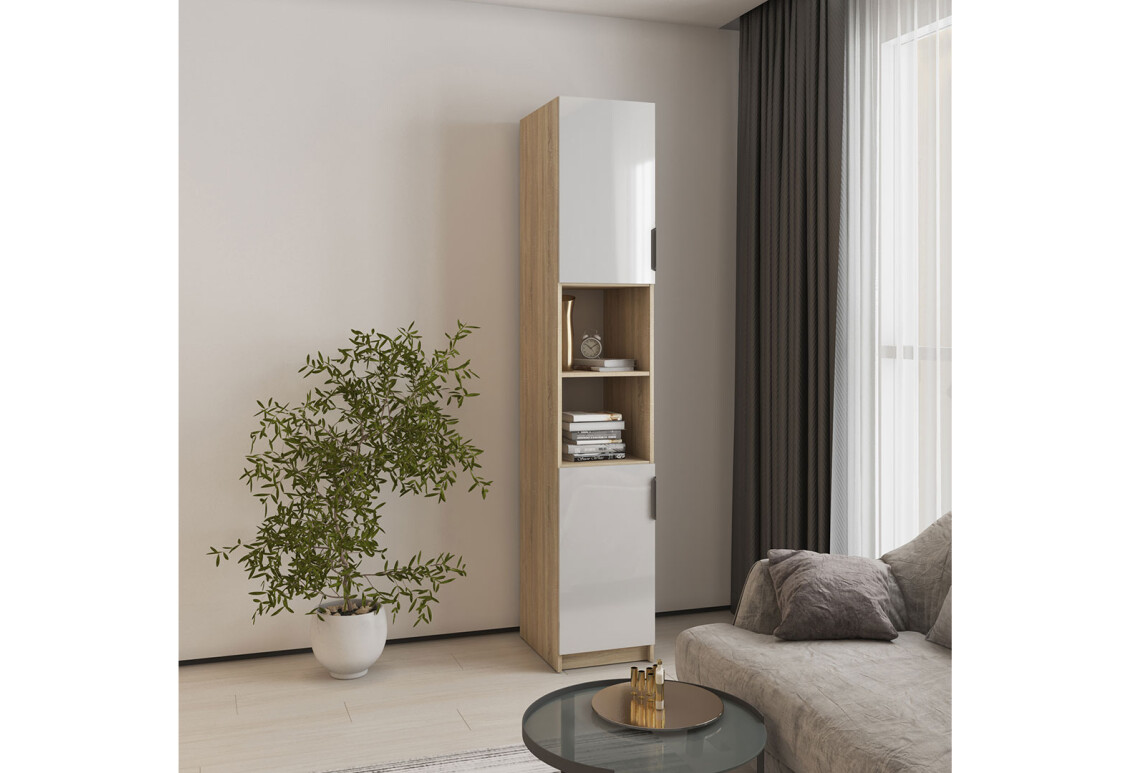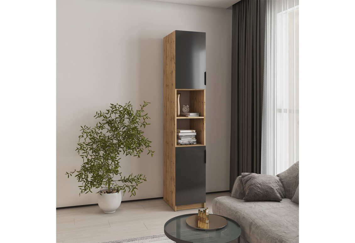 Пенал Мебель Стар Оскар В фасад DPL 40 см – это идеальное решение для организации пространства в вашем доме. Этот комбинированный пенал сочетает в себе современный стиль и высокую функциональность, что делает его незаменимым элементом в интерьере. Изготовленный из прочной плиты и дополненный качественным фасадом из ДСП, он гарантирует надежность и долговечность. Пенал идеально подходит для хранения различных вещей, от книг до бытовых предметов, благодаря своим внушительным размерам: ширина 40 см, высота 220 см и глубина 50 см. Вы можете выбрать из множества доступных модификаций, что позволит вам адаптировать пенал под ваш интерьер. Цветовая палитра корпуса включает такие варианты, как трюфель, дуб тахо, аляска серая, антрацит и другие, а фасады представлены в различных оттенках, включая чёрное дерево, натуральное дерево и бетон. Это дает возможность каждому покупателю найти идеальное сочетание для своего дома.