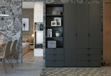 Шкаф-стеллаж является частью модульной системы Индиана, которая включает в себя 47 элементов, позволяя вам создать гармоничное пространство в вашем доме. В этой системе вы найдете разнообразные товары, такие как тумбы под TV, комоды, журнальные и письменные столы, столовые столы, односпальные и двуспальные кровати, а также вешалки для одежды и прикроватные тумбы. Это дает вам возможность легко подобрать нужные элементы для вашего интерьера, обеспечивая стиль и функциональность.