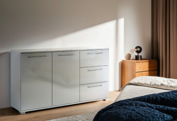 - Комод МироМарк Меги / Megy с 2 дверками и 3 ящиками 146 см глянец серый шиншилла, 1 шт – 145.80 см x 81.10 см x 40.00 см