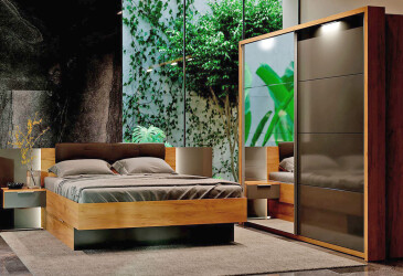 Спальни со шкафом-купе — это не только удобство, но и стиль. Наша продукция выполнена в современных стилях, таких как модерн и современный, что позволяет легко вписать мебель в любой интерьер. Доступные оттенки — белые, коричневые, серые и темные — помогут вам создать уникальную атмосферу в вашей спальне. Глянцевая и ламинированная ДСП, используемая в производстве, обеспечивает долговечность и легкость в уходе за мебелью.