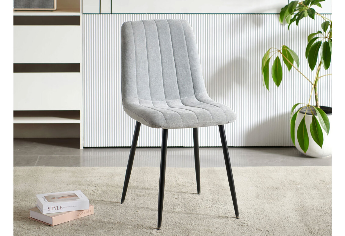 - Дизайн: Тонкие черные металлические ножки гармонично сочетаются с обивкой из мягкого и приятного на ощупь шенилла.