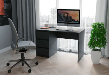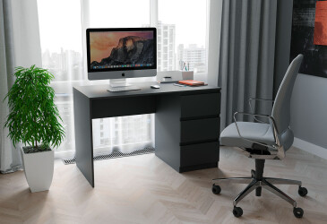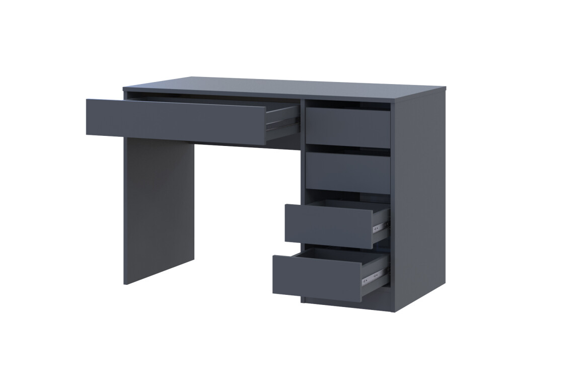 Письменный стол Креденс Фениче Эрго – это идеальное решение для вашего рабочего пространства, сочетающее в себе практичность и современный стиль. С размерами 110x55 см и высотой 75 см, этот стол прекрасно впишется как в домашний кабинет, так и в офис. Его прямоугольная форма обеспечивает удобство при работе, а пять выдвижных ящиков позволяют организовать пространство и хранить все необходимые принадлежности под рукой. Изготовленный из высококачественной ДСП, стол отличается прочностью и долговечностью, что делает его надежным выбором для ежедневного использования. Стильный графитовый цвет придаёт мебели современный вид, а отсутствие ручек делает дизайн более минималистичным и лаконичным.