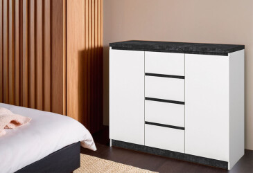 - Стол письменный Svit Mebliv Мия 128x60 см с тумбой и ящиком, белый/бетон темный