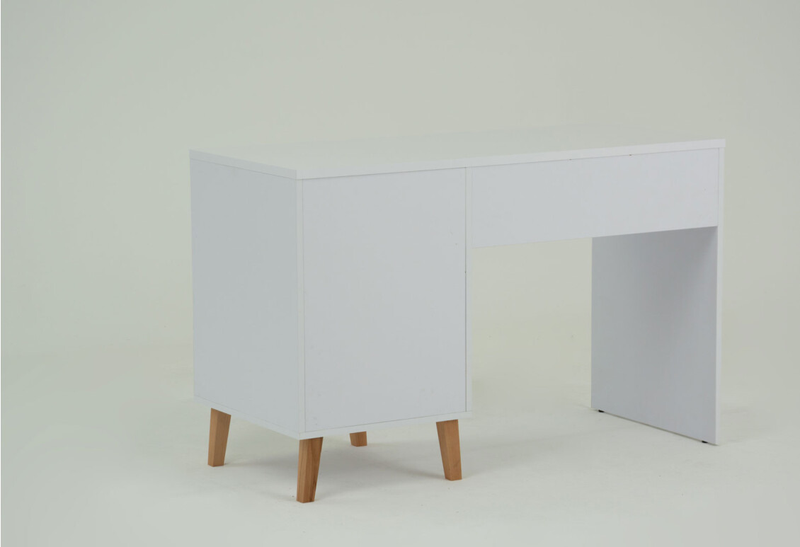 Стол изготовлен из высококачественной ДСП, что гарантирует его долговечность и надежность. Телескопические направляющие полного выдвижения обеспечивают легкость и плавность работы ящика, а деревянные ручки добавляют нотку элегантности и стиля. Этот письменный стол – отличный выбор для тех, кто ценит функциональность и качество по доступной цене.