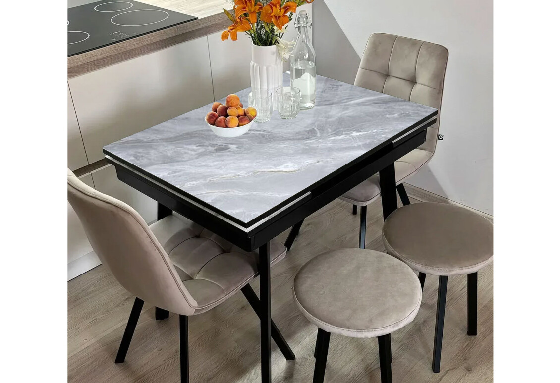 Кухонный стол Jam Slim — это идеальное решение для тех, кто ценит функциональность и стиль в интерьере. Его раскладной механизм позволяет легко увеличить размеры стола с 110 см до 170 см в длину, что делает его универсальным выбором для любого случая — от семейного ужина до приема гостей. Этот прямоугольный стол с элегантным черным цветом и блестящей столешницей из стекла и ДСП привнесет в вашу кухню нотку современного лофта, подчеркивая оригинальность и утонченность вашего пространства. Корпус из металла обеспечивает надежность и долговечность, что делает этот стол не только красивым, но и практичным выбором для ежедневного использования.