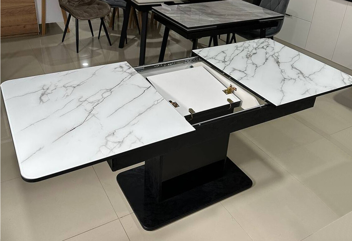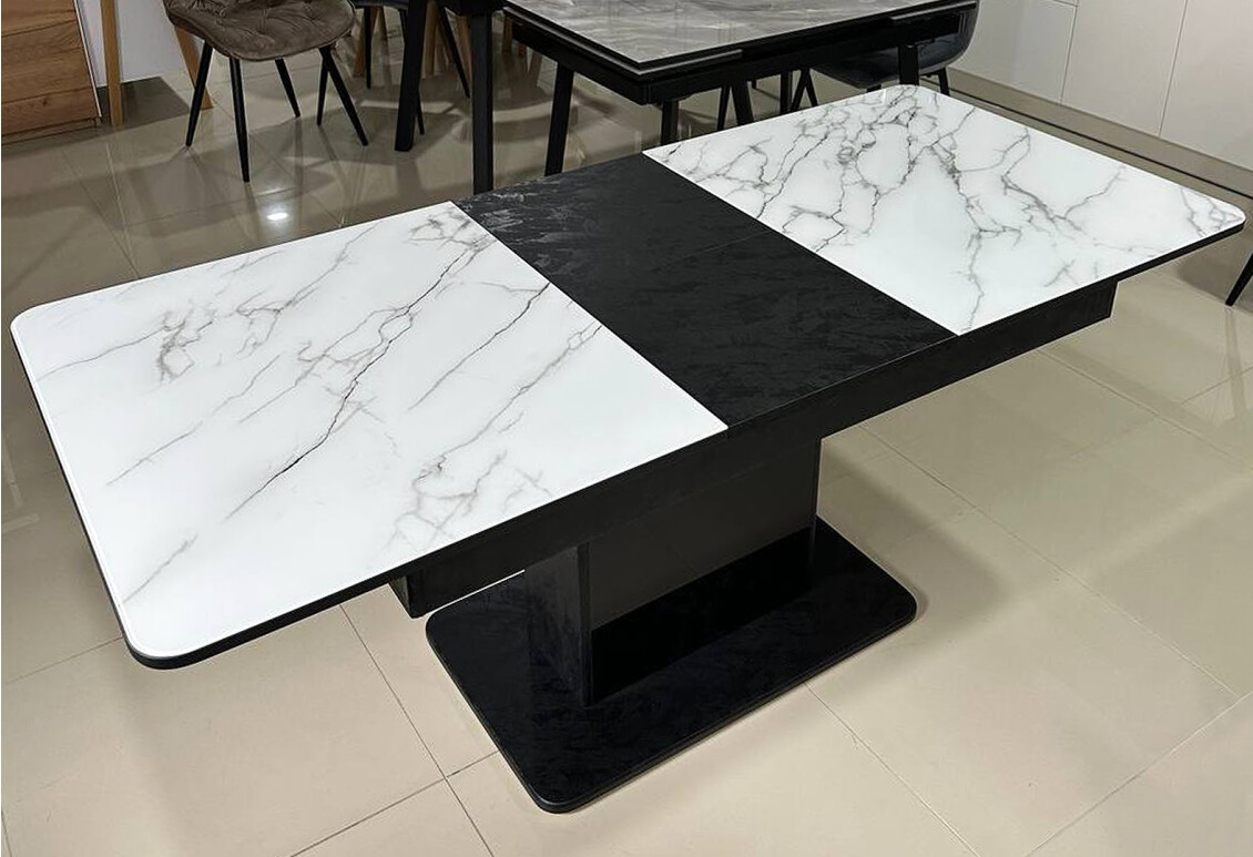 Кухонный стол Jam Бостон Т раскладной – это идеальное решение для тех, кто ценит функциональность и стиль в интерьере. Этот стол, выполненный в современном дизайне, легко впишется в любой кухонный ансамбль. С его помощью вы сможете организовать пространство для приема гостей или семейных ужинов, а благодаря раскладному механизму, он станет еще более универсальным. В разложенном виде его размеры составляют 180х80 см, что позволяет разместить за ним большее количество человек. Стол выполнен из качественных материалов: ДСП и МДФ, а его стильный цвет бетон черный в сочетании с бриллиантом придаст вашему интерьеру изысканность и современность. Выбирая этот стол, вы получаете не только надежную и практичную мебель, но и стильный акцент для вашей кухни.