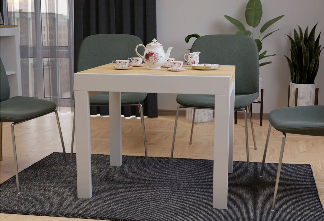 Стол изготовлен из качественных материалов, таких как ламинированная ДСП и дерево, что гарантирует его долговечность и надежность. Механизм раскладывания прост и удобен в использовании, позволяя легко трансформировать стол в зависимости от ваших потребностей. Размеры стола в собранном виде составляют 89 см в ширину, 68,6 см в глубину и 75 см в высоту, что делает его компактным и удобным для небольших помещений.