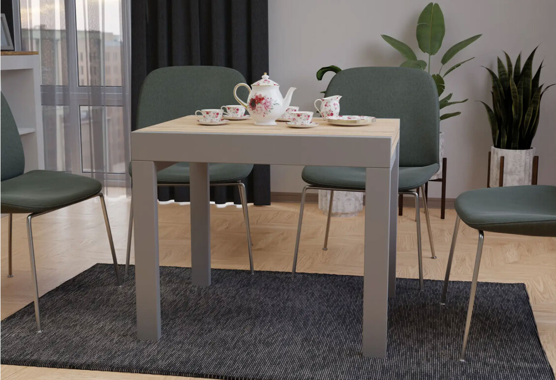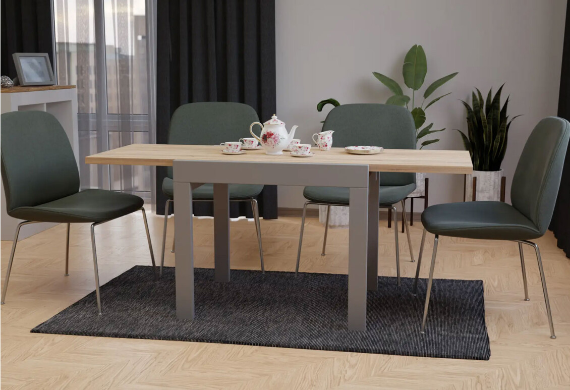 Обеденный стол Неман Корс — это идеальное решение для тех, кто ценит функциональность и стиль в одном флаконе. Этот современный прямоугольный стол станет не только практичным элементом вашей кухни или столовой, но и стильным акцентом в интерьере. Его размер 89x69 см позволяет разместить его даже в небольших помещениях, а раскладной механизм обеспечивает возможность увеличения столешницы до 178 см в длину, что делает его подходящим для дружеских встреч и семейных ужинов. Столешница выполнена из качественной ламинированной ДСП, а ножки — из прочного дерева, что гарантирует надежность и долговечность. Цветовое сочетание серого и дуба сонома придаёт изделию современный вид, который легко впишется в любой интерьер.