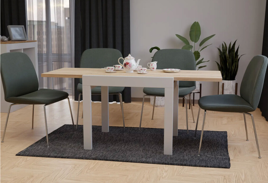 Обеденный стол Неман Корс – это идеальное решение для вашей кухни или столовой, которое сочетает в себе функциональность и современный стиль. Его прямоугольная форма и компактные размеры делают его удобным для небольших пространств, а возможность раскладывания позволяет увеличить площадь стола до 178 см в длину, что идеально подходит для семейных обедов или встреч с друзьями. Стол выполнен из качественных материалов: дерево и ламинированная ДСП, что обеспечивает надежность и долговечность. Белые ножки в сочетании с дубом сонома придают ему современный и стильный вид, который легко впишется в любой интерьер. Вы сможете наслаждаться комфортом и уютом, не жертвуя при этом свободным пространством.