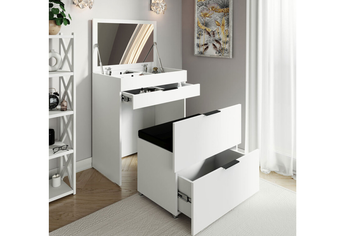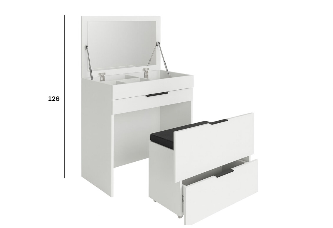 Туалетный столик Svit Mebliv Лола – это идеальное решение для создания уютного уголка красоты в вашем доме. С его помощью вы сможете не только удобно организовать пространство для макияжа и ухода за собой, но и добавить стильный акцент в интерьер. Столик выполнен в современном дизайне, который легко впишется в различные стили оформления, благодаря цвету нимфея альба. Компактные размеры (ширина 70 см, высота 82 см, глубина 45 см) делают его идеальным выбором для небольших помещений, где важна каждая деталь. Одной из главных особенностей этого туалетного столика является подъемное зеркало, которое обеспечит вам удобство в использовании. Выдвижной ящик позволит хранить косметику и аксессуары в порядке, а металлические ручки добавляют дополнительный штрих к общему стилю. Благодаря телескопическим направляющим полного выдвижения, доступ к содержимому ящика станет легким и комфортным. Кроме того, столик комплектуется выдвижной банкеткой на колесах, что делает его использование еще более удобным и функциональным.