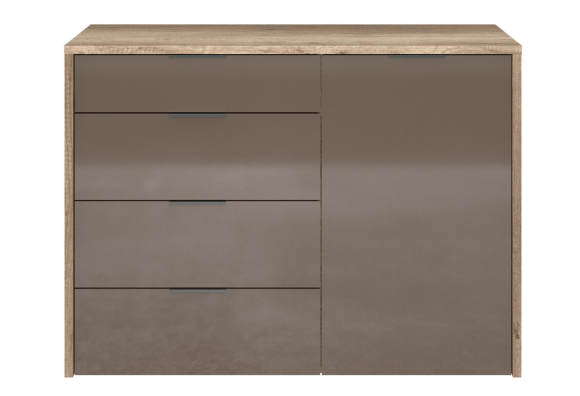 Комод VMV holding Капрі - це стильний та функціональний елемент меблів, який ідеально впишеться в будь-який сучасний інтер'єр. Завдяки своїм компактним розмірам (ширина 120 см, висота 87.8 см, глибина 43.1 см), він не займе багато місця, але при цьому забезпечить достатньо простору для зберігання речей. Комод виготовлений з якісної ламінованої ДСП, що гарантує його надійність та довговічність. Глянцевий фасад з ДСП надає меблю елегантного вигляду, а металеві ручки додають сучасного акценту. Завдяки телескопічним напрямним повного висуву, шухляди легко відкриваються та закриваються, що робить використання комоду ще більш зручним.