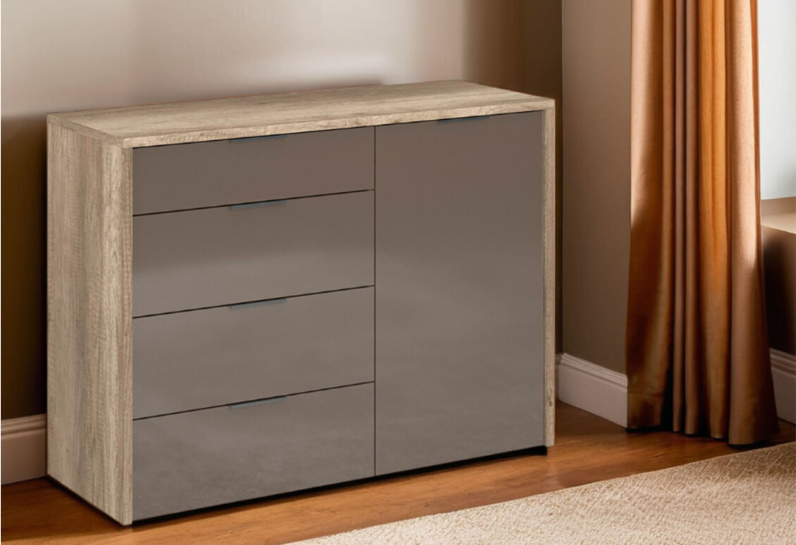- Тип комоду: з 4 шухлядами, з дверцятами – забезпечує оптимальне зберігання різних речей.