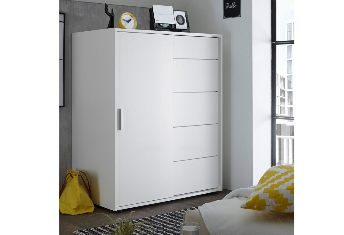 Комод MiroMark Кейс 1-дверний з 5 шухлядами – це ідеальне рішення для тих, хто цінує функціональність і стиль у своєму інтер'єрі. Завдяки своїм компактним розмірам (ширина 102 см, висота 127 см, глибина 60 см), цей комод легко впишеться в будь-яке приміщення, забезпечуючи достатньо місця для зберігання речей. Його білий колір надає легкості та свіжості, а мінімалістичний дизайн дозволяє йому гармонійно поєднуватися з різними стилями інтер'єру. Комод виготовлений з ламінованої ДСП, що забезпечує високу надійність та довговічність. Завдяки телескопічним напрямним повного висуву, шухляди легко відкриваються та закриваються, що робить його використання ще більш зручним. Крім того, комод має дверцята та штангу для вішаків, що дозволяє зберігати не лише одяг, а й інші речі. У нас ви можете придбати цей комод у трьох кольорах: білий, графіт та білий/дуб артизан, що дає можливість обрати оптимальний варіант для вашого інтер'єру.
