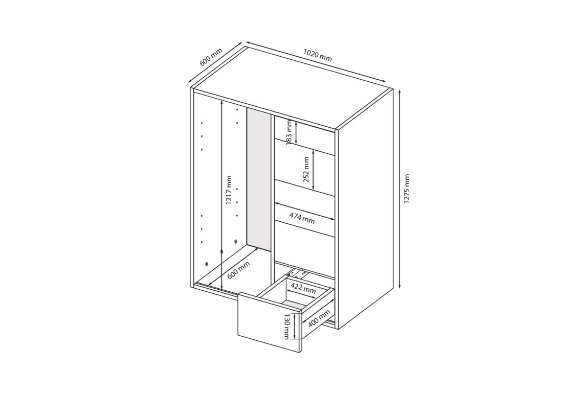 - Розмір: ширина 102.00 см, висота 127.00 см, глибина 60.00 см – оптимальні габарити для зручного використання в будь-якому приміщенні.