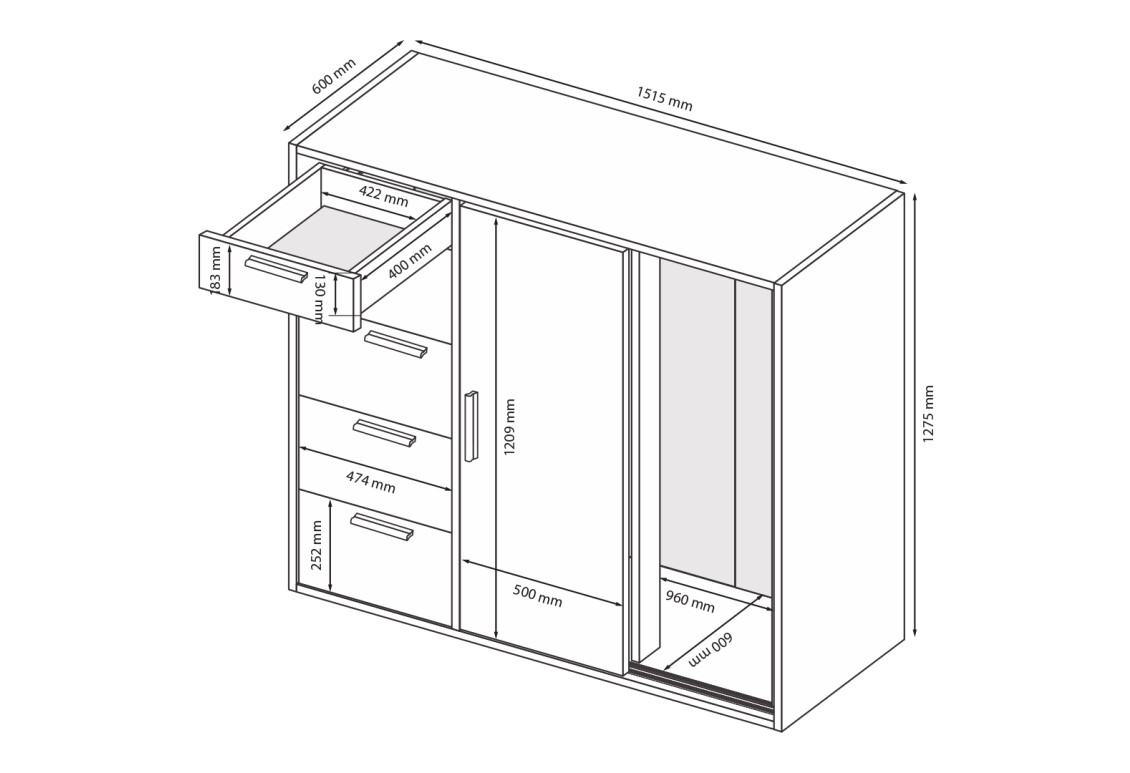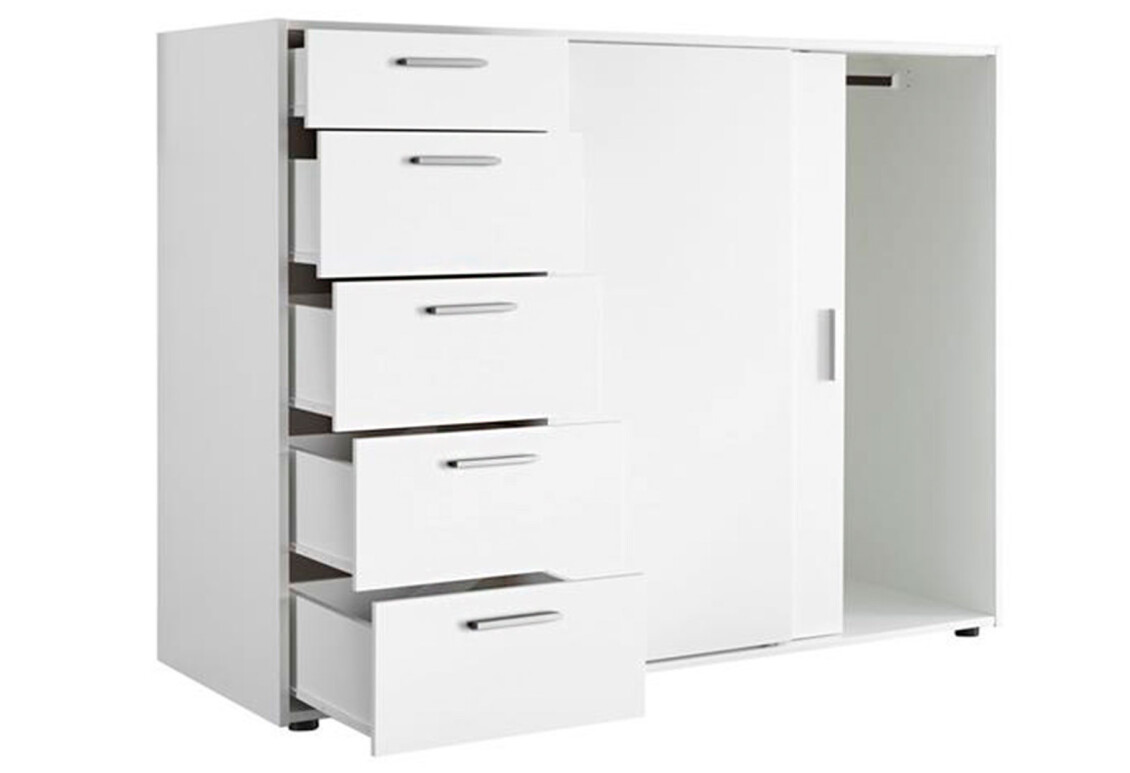 - Тип комоду: з 5 шухлядами, з дверцятами, зі штангою для вішаків – дозволяє зручно організувати зберігання речей.