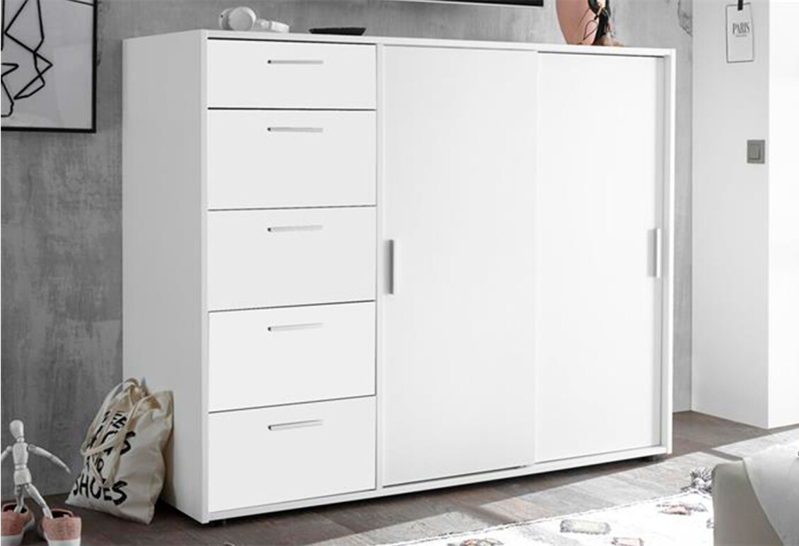 Комод Кейс 2дв 5шх (Білий) від виробника MiroMark – це ідеальний вибір для тих, хто цінує функціональність та стиль у своїй оселі. Завдяки мінімалістичному дизайну, цей комод легко впишеться в будь-який інтер'єр, надаючи йому сучасного вигляду. Виконаний з ламінованої ДСП, він забезпечує надійність та довговічність, що робить його чудовим вибором для щоденного використання. Комод оснащений п’ятьма шухлядами та дверцятами, що дозволяє зручно зберігати речі, а також має штангу для вішаків, що розширює його функціональність. Це ідеальне рішення для спальні, передпокою чи вітальні, де необхідно організувати простір та зберігати речі в порядку.