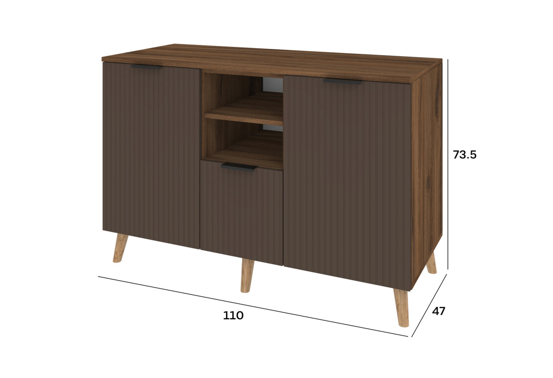Комод Київський стандарт Лайн 3-дверний з нішею – це ідеальний вибір для тих, хто цінує поєднання функціональності та сучасного дизайну. Його ширина 110 см, висота 73,5 см та глибина 47 см роблять його практичним рішенням для будь-якої спальні або вітальні. Завдяки трьом дверцятам, ви отримаєте достатньо місця для зберігання речей, а також зручну нішу, що може слугувати для розміщення декоративних елементів або книг. Комод виготовлений з якісних матеріалів: корпус з ламінованої ДСП та фасад з МДФ забезпечують надійність і довговічність виробу. Металеві ручки додають стильного акценту, а телескопічні напрямні повного висуви забезпечують легкість у використанні. Доступний у кольорах дуб ліворно / смокі софт та дуб рая / білий глянець, цей комод легко впишеться в будь-який інтер'єр.