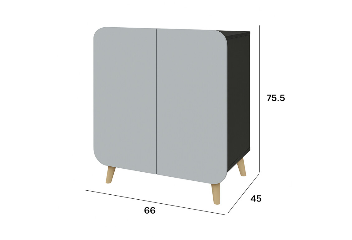Комод Київський стандарт Руна 2-дверний – це ідеальне рішення для тих, хто цінує простоту та функціональність у меблях. Його компактні розміри (ширина 66 см, висота 75,5 см, глибина 45 см) роблять його відмінним вибором для будь-якого інтер'єру, незалежно від площі приміщення. Виконаний у стильному антрацитовому та сірому кольорах, цей комод легко впишеться в будь-який сучасний інтер'єр, підкреслюючи його мінімалістичний характер. Виготовлений з якісних матеріалів, таких як ламінована ДСП для корпусу та МДФ для фасаду, комод забезпечує надійність та довговічність. Особливістю цього виробу є відсутність ручок, що надає йому елегантного вигляду та спрощує використання. Дерев'яні ніжки додають стійкості та підкреслюють природність матеріалів.