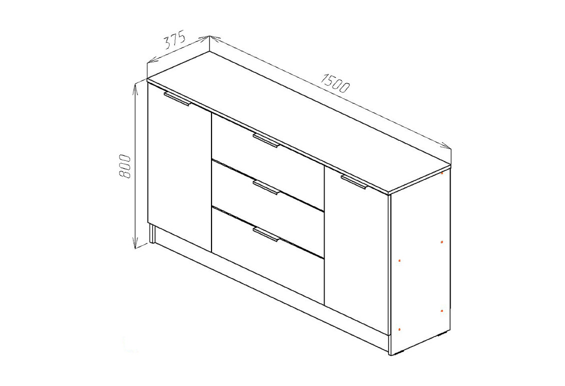 - Тип комоду: з 3 шухлядами та 2 дверцями - оптимальне поєднання відкритого та закритого зберігання.
