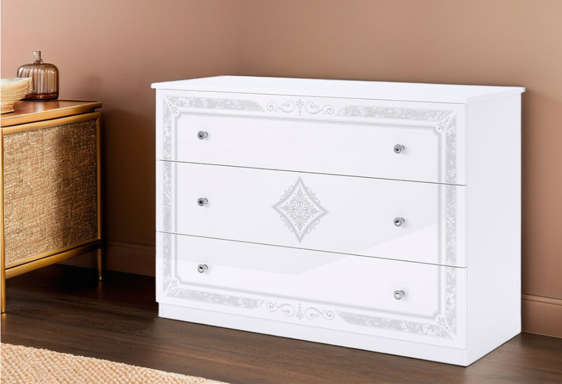 Комод MiroMark Луїза з 3 шухлядами – це вишуканий та функціональний елемент меблів, який стане ідеальним доповненням до вашої спальні або вітальні. Завдяки своїм класичним формам та елегантному білу кольору, він легко впишеться в будь-який інтер'єр, додаючи йому витонченості та затишку. Розміри комоду (ширина 118 см, висота 82 см, глибина 49 см) роблять його практичним вибором для зберігання речей, а три просторі шухляди дозволяють організувати простір максимально зручно. Виготовлений з якісних матеріалів, таких як глянцева ДСП для фасаду та ламінована ДСП для корпусу, цей комод забезпечує надійність та довговічність у використанні.