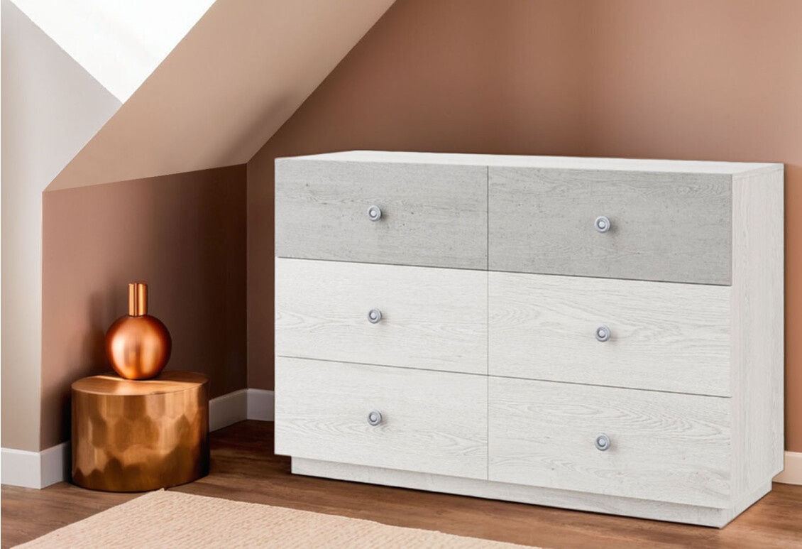 Комод Світ Меблів Вівіан з 6 шухлядами – це ідеальне рішення для тих, хто цінує комфорт та функціональність у своїй оселі. Цей стильний комод у модерному дизайні не лише доповнить інтер'єр вашої спальні, але й забезпечить достатньо місця для зберігання речей. Завдяки своїм габаритам – ширина 140 см, висота 90 см та глибина 47 см – він чудово впишеться в будь-який простір, створюючи затишок та порядок. Комод виготовлений з ламінованої ДСП, що гарантує його надійність та довговічність, а світлий артвуд в комбінації з індастріалом надає йому сучасного вигляду.