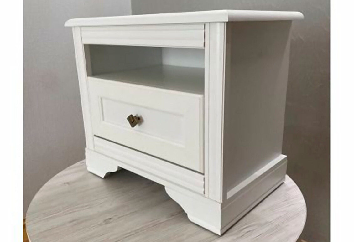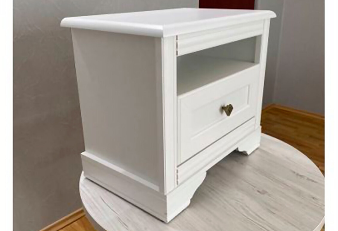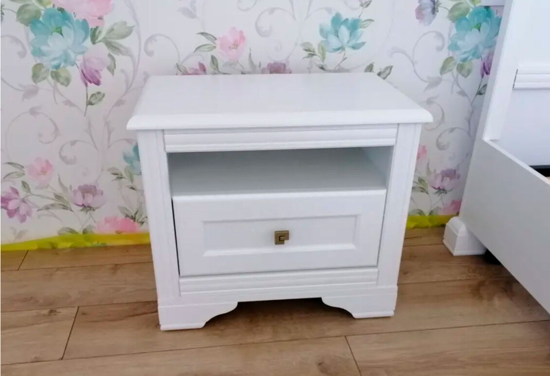 Приліжкова тумба Гербор Клео – це ідеальне рішення для вашої спальні, яке поєднує в собі елегантність, функціональність та надійність. Виготовлена з якісних матеріалів, ця тумба стане не лише стильним доповненням до вашого інтер'єру, але й забезпечить зручність у використанні. З розмірами 58 см в ширину, 51 см у висоту та 37 см в глибину, вона ідеально підходить для розміщення біля ліжка, надаючи достатньо місця для зберігання необхідних речей. Білий колір та класичний стиль роблять цю тумбу універсальною, що дозволяє легко інтегрувати її в будь-який інтер'єр. Завдяки телескопічним напрямним повного висуву, ви зможете без зусиль відкривати шухляду, що робить цю тумбу ще більш зручною у використанні.